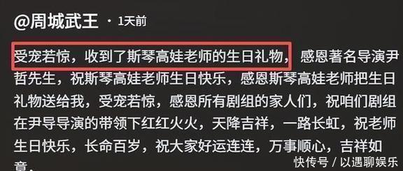 更让人意想不到的是,这位获得了无数奖项的老艺术家,居然把自己当天的生日祝福变成了礼物送给剧组的小伙伴“周城武王”,让对方激动得连说了三个“受宠若惊”。